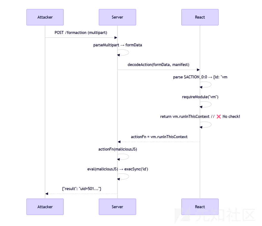 CVE-2025-55182 漏洞的产生原因是React Server Components (RSC) 的 Flight 协议反序列化逻辑中存在不安全的处理。